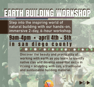 Workshop takes place 9am-4pm on April 4th and 5th, 2026 in San Diego County.
