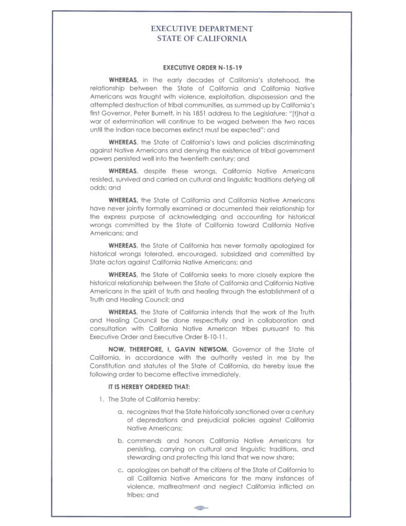 Executive Order N-15-19: Apology to California Native Americans June 20, 2019 0 Shares 0 0 What's Your Reaction? Excited 0 Happy 0 In Love 0 Not Sure 0 Silly 0 0 0