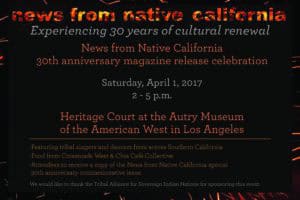 March 2017 marks the 30th anniversary of News from Native California magazine. Throughout the year we will be celebrating “Experiencing Thirty Years of Cultural Renewal.” And there is nothing we would love more than for all of you to celebrate with us!