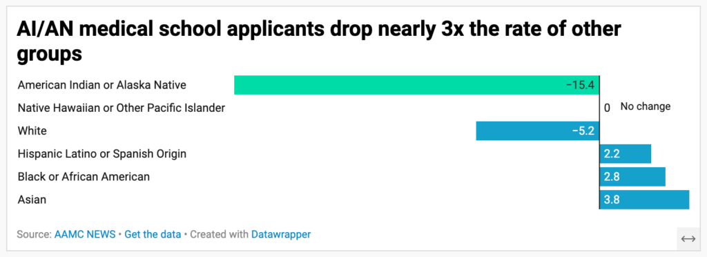 The remaining spots are harder to fill because the barriers to even applying to medical school — from MCAT scores to prerequisites, and GPA requirements — are disproportionately difficult for Native students.