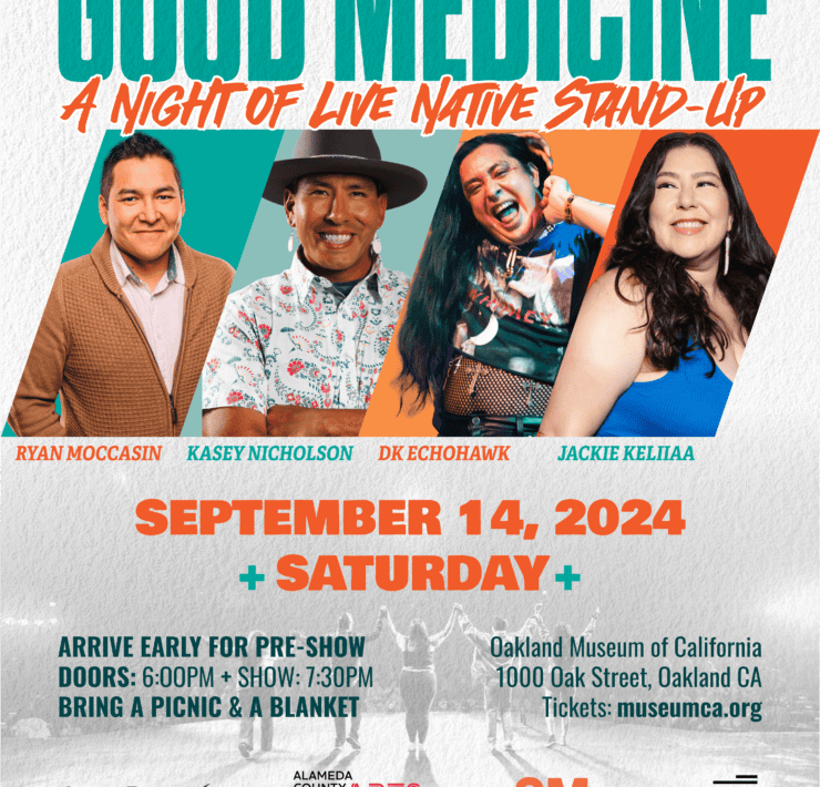 Hosts include American Indian Child Resource Center Title VI Indian Education Coordinator Manny Lieras (Navajo / Comanche) along with a co-host from Sogorea Te Land Trust. “This year we’re celebrating Land Back, particularly the win of the return of the West Berkeley Shellmound to Sogeorea Te Land Trust,” said comedian and Many Nations on One Land board member Jackie Keliiaa (Yerington Paiute / Washoe / Native Hawaiian). “We’ve also expanded the program this year to include emerging and youth artists.”