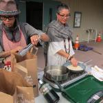 There seemed to be something greater at work over those two days, excitement and a feeling of home and community settled with everyone present. While we talked and shared pieces of our lives with each other, you could feel Spirit present throughout the day. The afternoon was filled with food; acorn, wild rice soup, fried seaweed, smoked salmon and tortillas, herbs and stick tea. We shared an area for creativity with traditional and contemporary jewelry, and games. Heyday provided copies of News From Native California and posters, so everyone was able to take a memento home to remember their experience.