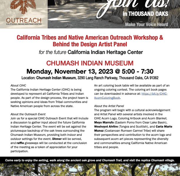 California Tribes and Native American Outreach Workshop & Behind the Design Artist Panel for the future California Indian Heritage Center