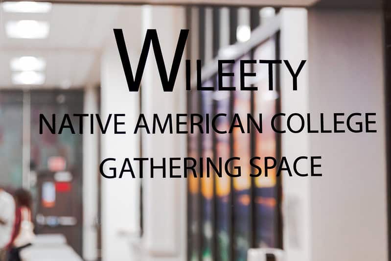 Wileety’s curriculum is designed so students move as a group through general education and NAS courses. For this semester, two courses are taught inside the new Wileety College Gathering Space, and the students receive credit for meeting with mentors, attending talks with tribal leaders, and volunteering as a cohort.
